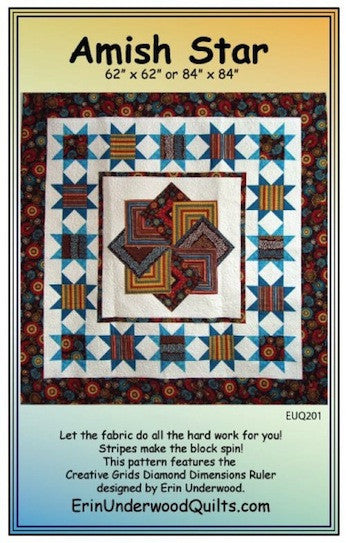 It looks like lots of hard work but really the fabric does it all! Use stripes to get a rotating effect or use non-directional prints to showcase a favorite fabric! This pattern uses the Creative Grids 45-degree Diamond Dimensions Ruler which can be seen and ordered at item number CGREU2.