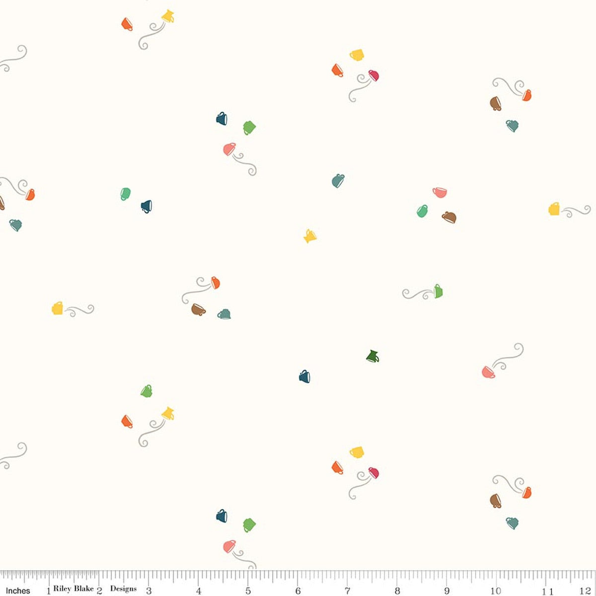 This print features scattered coffee cups.
