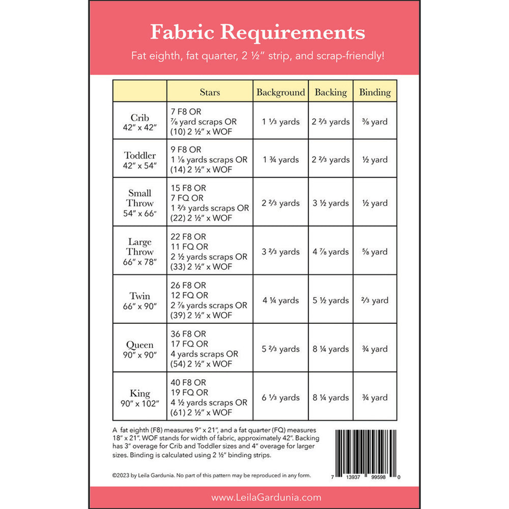 It is a great starter quilt and is F8, FQ, 2 1/2” strip, and scrap-friendly.