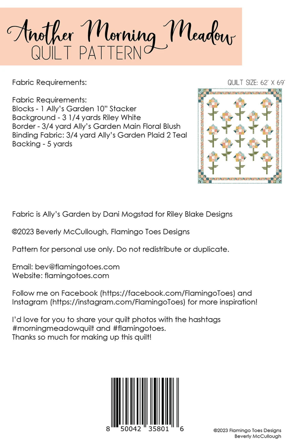 The quilt is designed for a 10" stacker but feel free to use fat quarters as well. 62” x 69” Fabric Requirements: Blocks - 1 Ally’s Garden 10” Stacker (fabric shown) Background - 3 1/4 yards Riley White Border - 3/4 yard Ally’s Garden Main Floral Blush Binding Fabric: 3/4 yard Ally’s Garden Plaid 2 Teal Backing - 5 yards