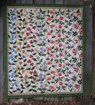 Make a wonderful summer quilt stripe by stripe in the size of your choice! This Block of the Month series contains 8 patterns with full sized templates and instructions for fusible web or hand applique methods. The instructions for sizes wall hanging to king is in the first stripe pattern.
