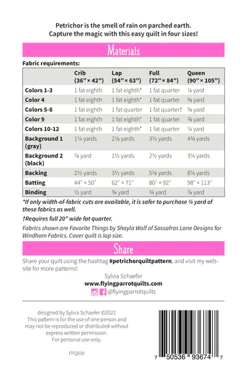 Petrichor Quilt Pattern is backordered and will ship as soon as it is back in stock.
