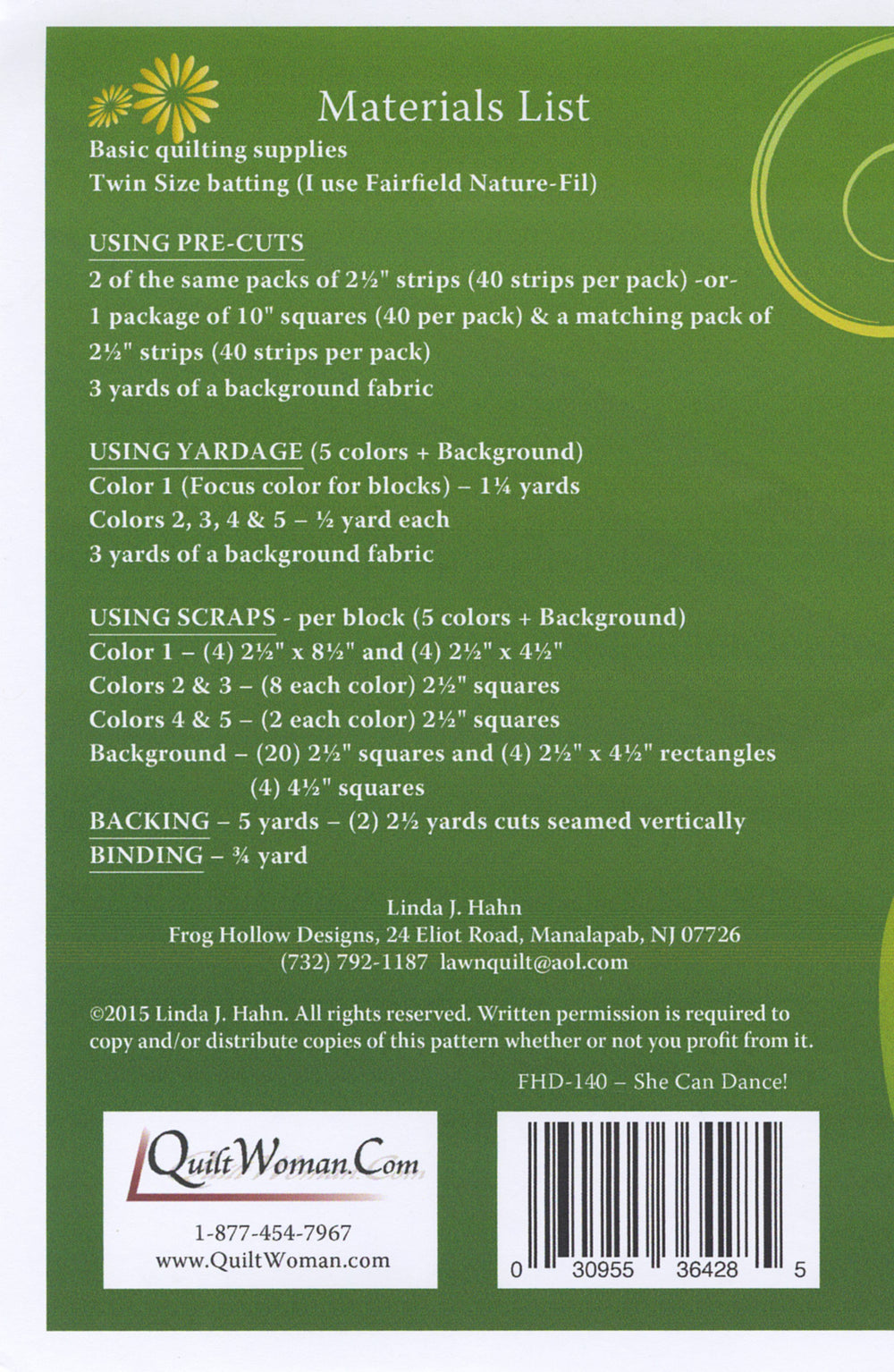She Can Dance Quilt Pattern is backordered and will ship as soon as it is back in stock.