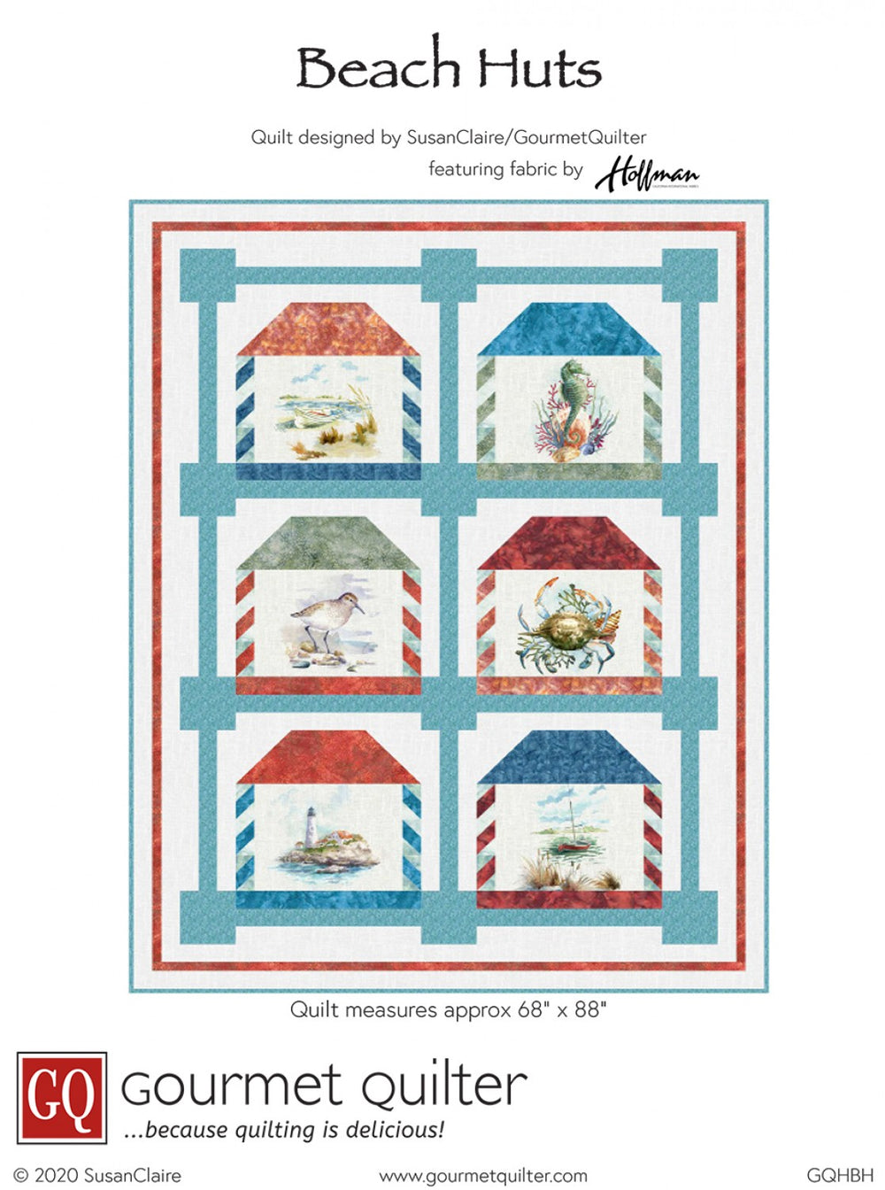 This quilt measures approx. 68" x 88" Beach Huts features Shoreline Stories by Hoffman Fabrics.