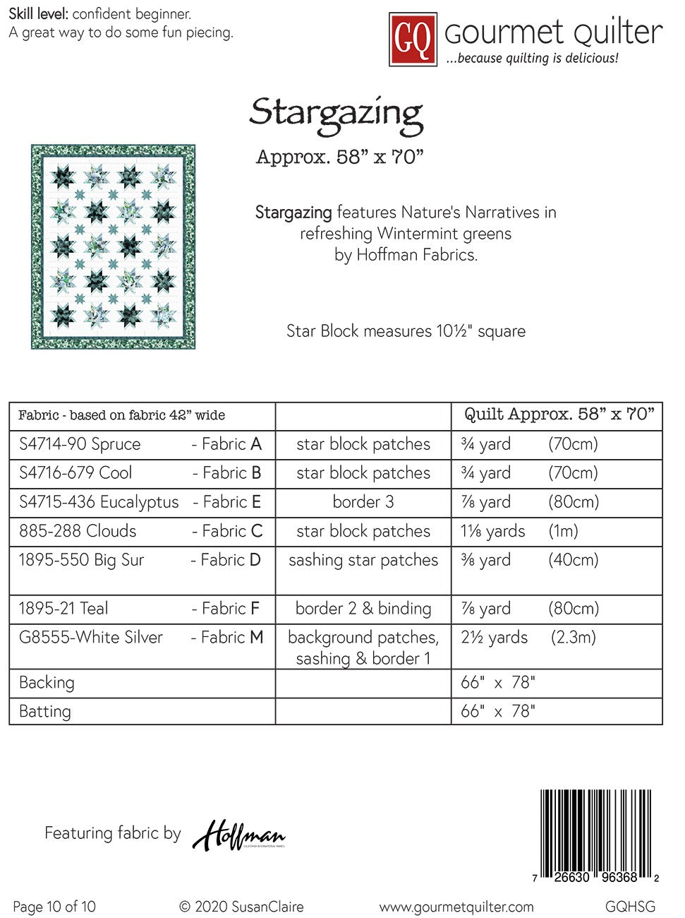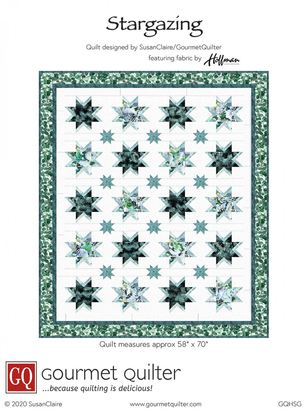 Quilt measures approx. 58" x 70". Stargazing features Nature’s Narratives in refreshing Wintermint greens by Hoffman Fabrics.