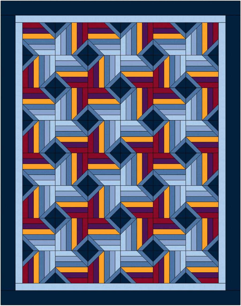 Quilt sizes: Throw - KingRequired Materials: Cotton quilting fabric in 6 colors, batting and sewing supplies.