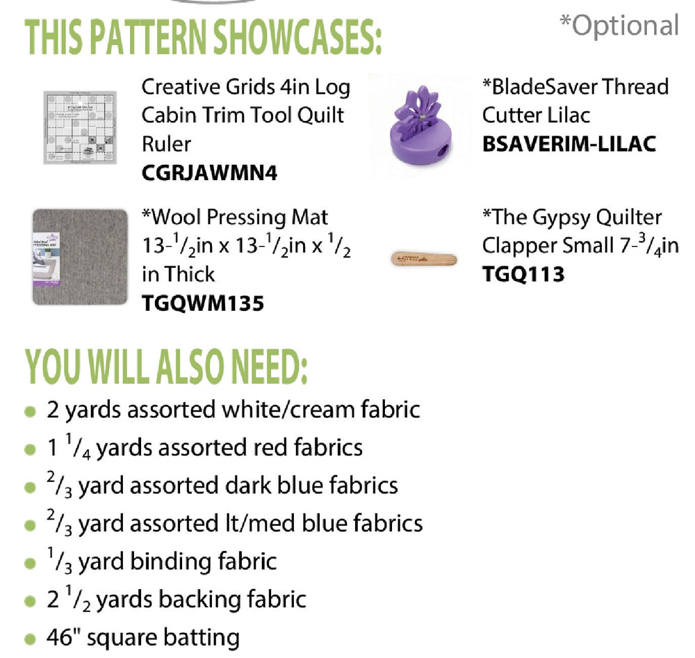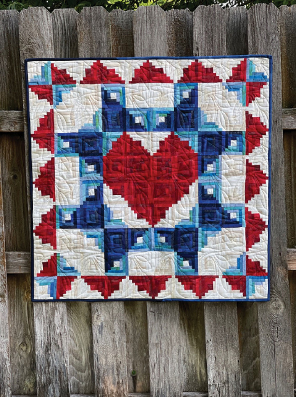 American Sweetheart combines traditional log cabins with courthouse steps blocks made with the Creative Grids Log Cabin Trim Tool for 4-inch finished blocks.