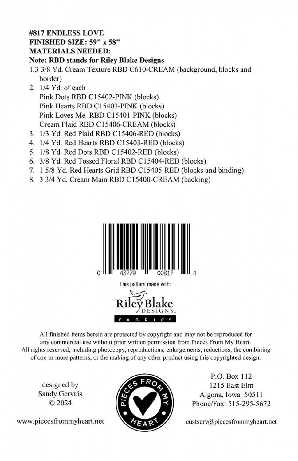 Endless Love Quilt Pattern is backordered and will ship as soon as it is back in stock.