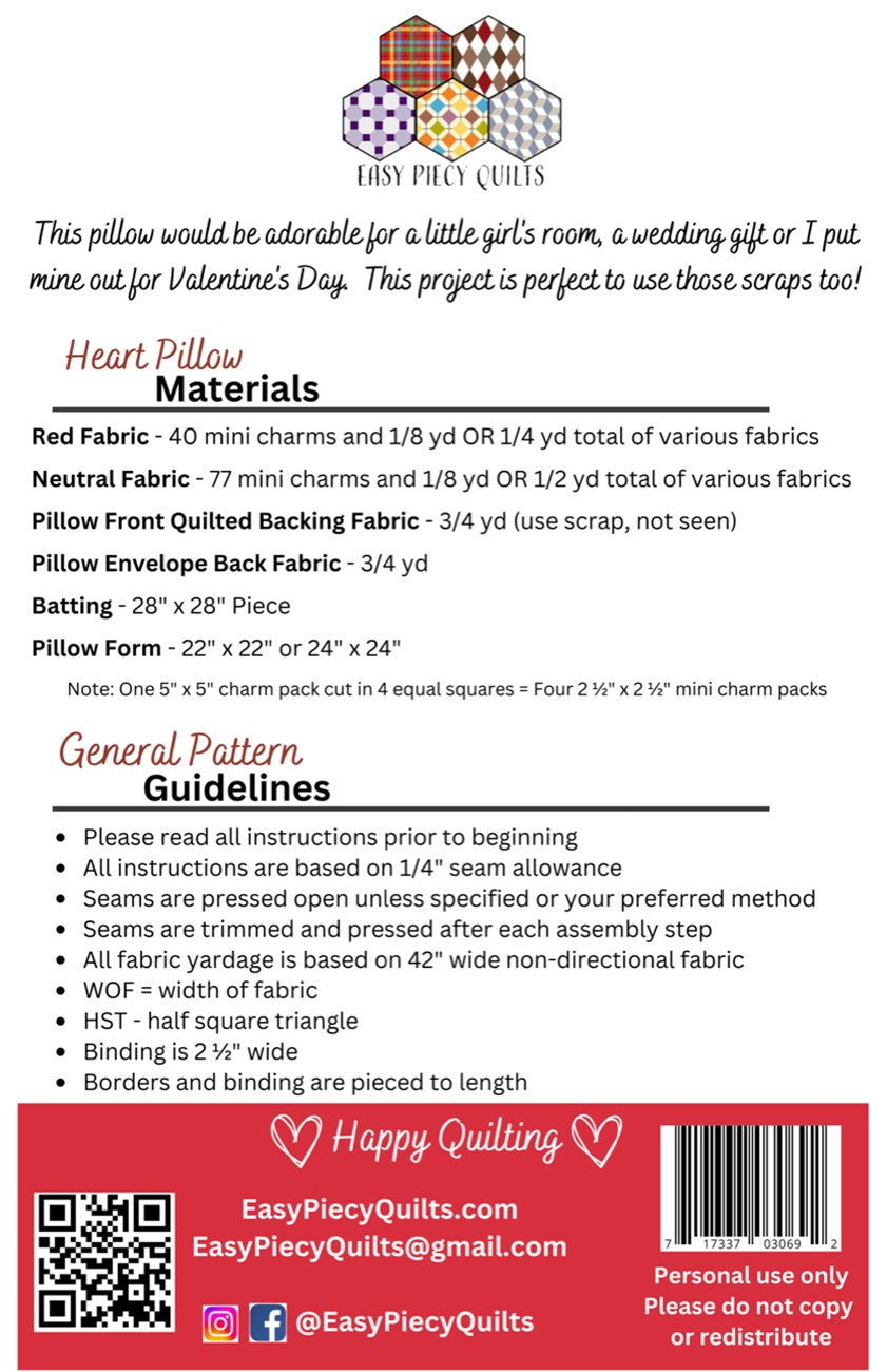 Completed pillow is 22" x 22" with instructions on envelope back included. Mini charm and charm square friendly.
