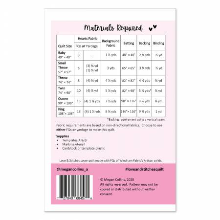Love and Stitches Quilt Pattern is backordered and will ship as soon as it is back in stock.