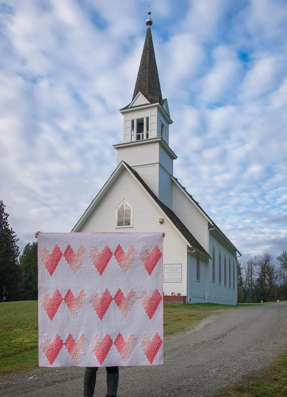 It’s love at first sight for Mi Amor Baby Quilt and Table Runner. This pattern uses several features of the Creative Grids and has beautifully illustrated easy to follow instructions. Strip piece, then cut diamonds, triangles, and parallelograms in different sizes to get the full effect. This pattern is so simple you could make it in an afternoon. Make as a baby quilt, wall hanging or a sweet Valentine table runner.