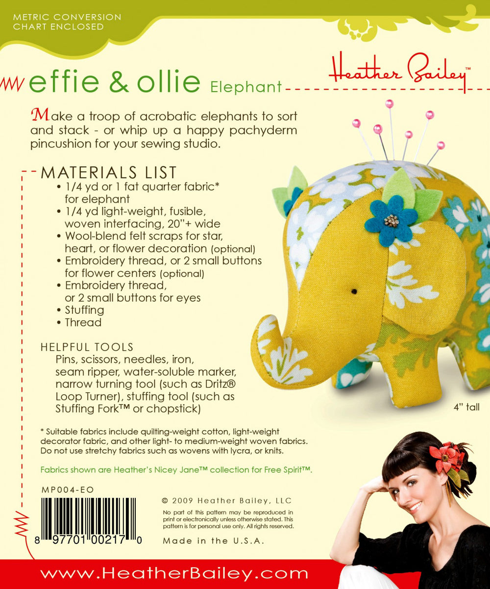 *Includes pattern & instructions for 4� elephant with star, heart, and flower embellishment options*