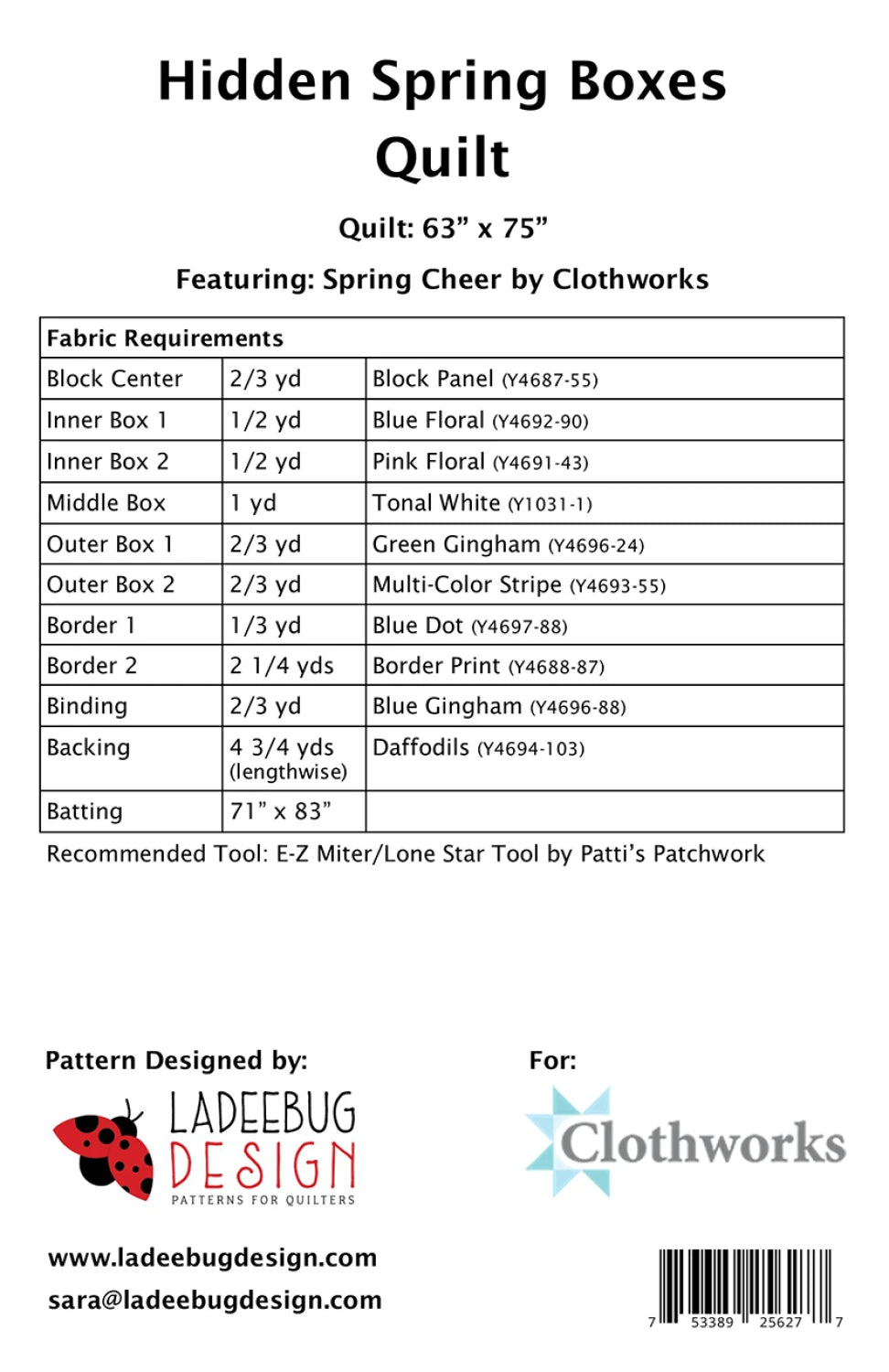 Hidden Spring Boxes Quilt Pattern is backordered and will ship as soon as it is back in stock.