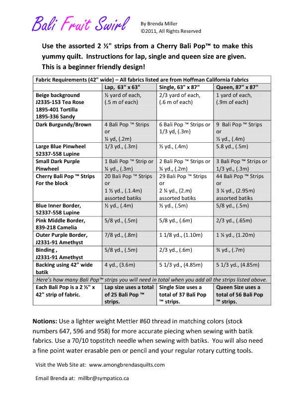 Bali Fruit Swirl Quilt Pattern is backordered and will ship as soon as it is back in stock.