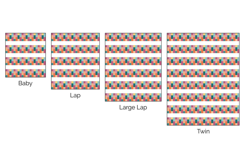 The pattern includes instructions for four sizes: baby, lap, large lap, and twin.