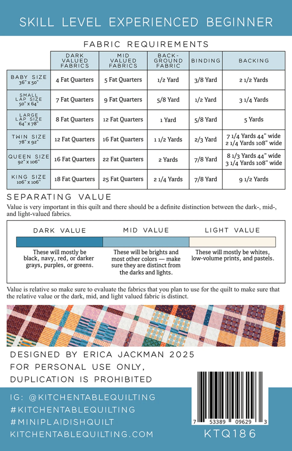 The Mini Plaid-ish Quilt Pattern is a fun, flexible, and striking design that turns simple shapes into a beautiful, plaid-inspired quilt.