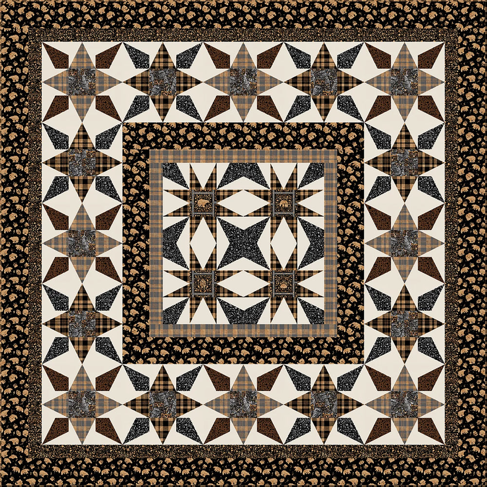 Beautiful woodsy quilt pattern features a beautiful star design.