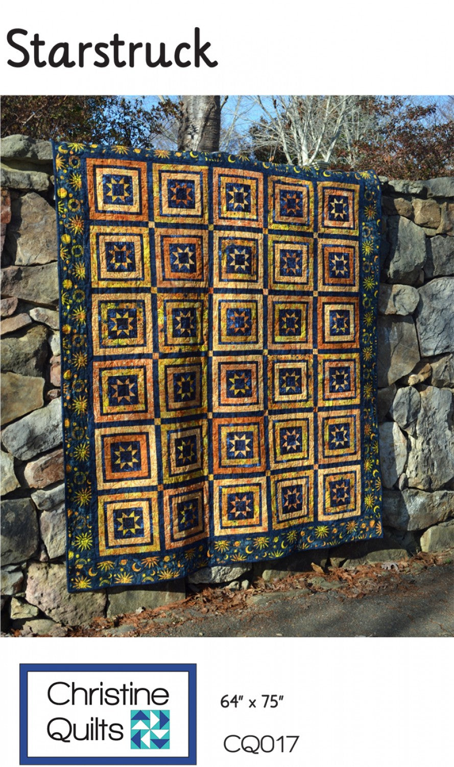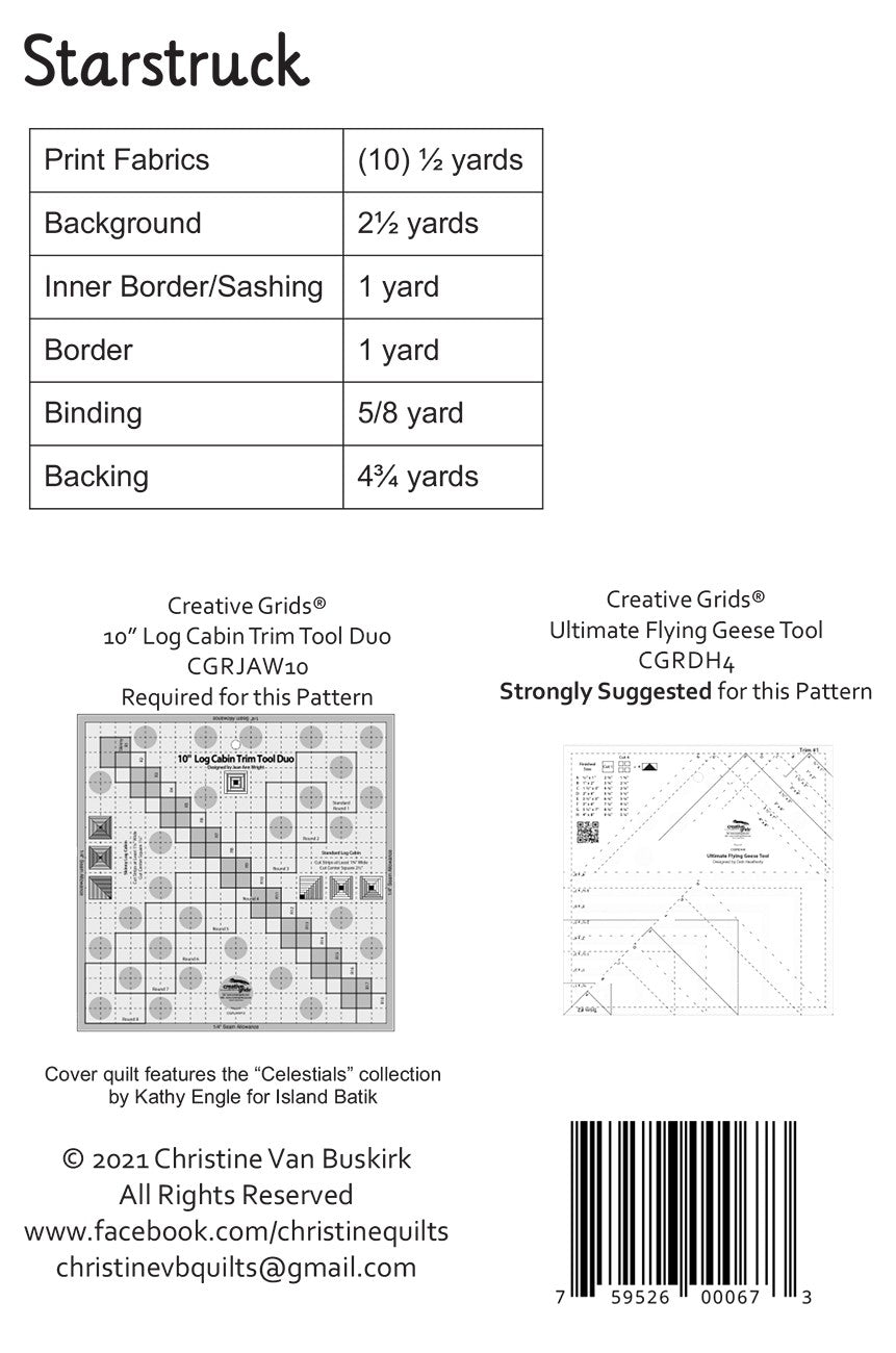 The framed sawtooth stars in this 64in x 75in throw quilt will leave you Starstruck! The Creative Grids 10" Log Cabin Duo ruler simplifies block construction, trimming after each round leads to perfect piecing!