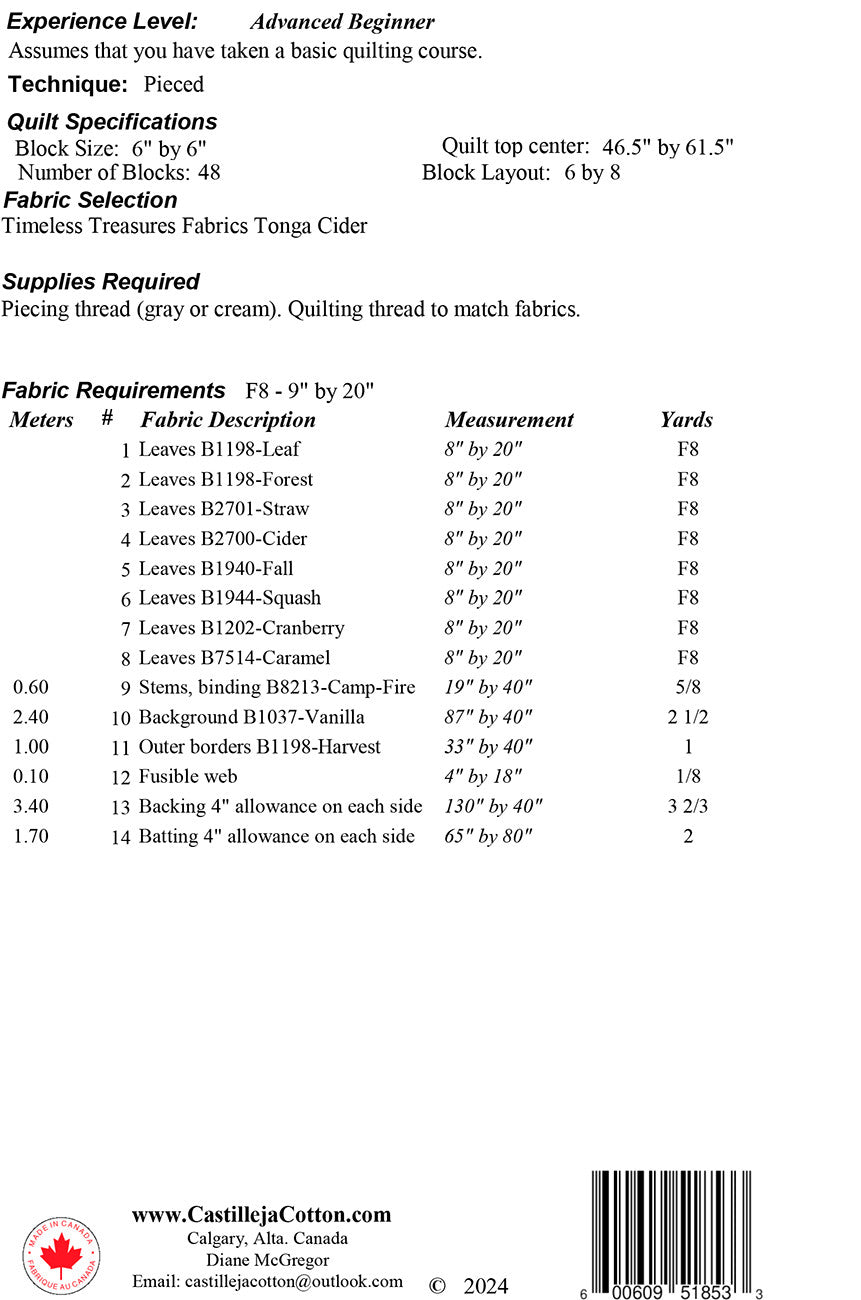 Pattern designed by Diane McGregor of Castilleja Cotton, © 2024