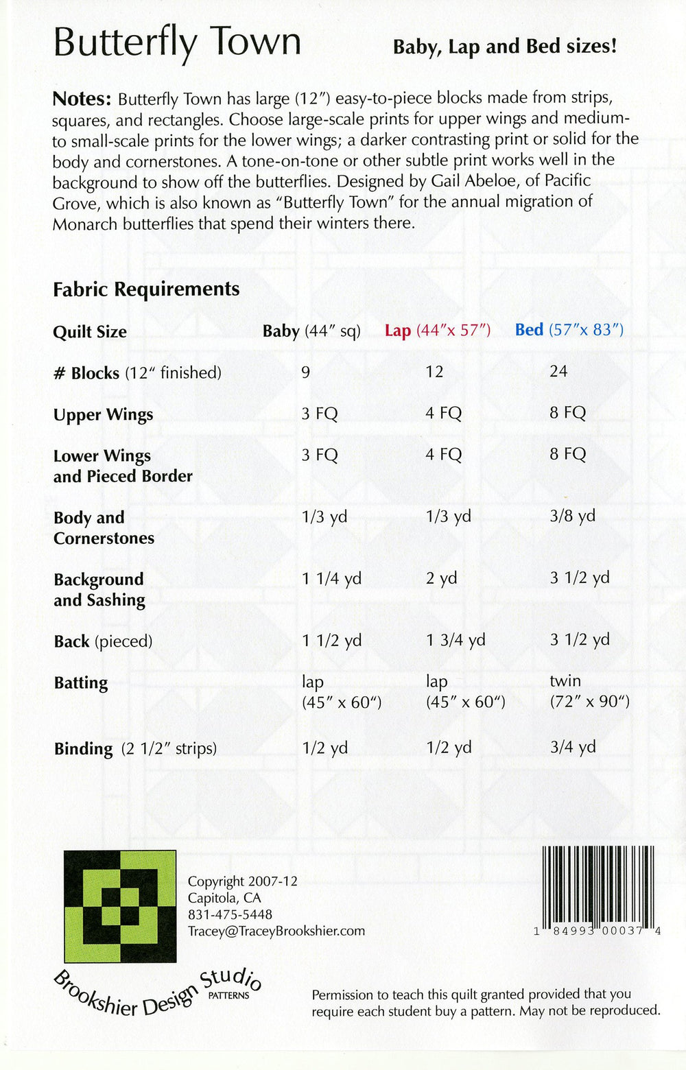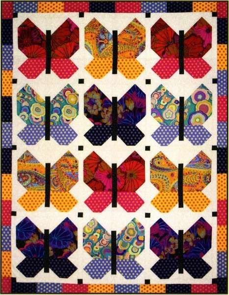 Large easy-to-piece blocks made from strips, squares & rectangles. Choose large scale prints for upper wings & medium to small scale prints for lower wings; a darker contrasting print for the body & cornerstones.