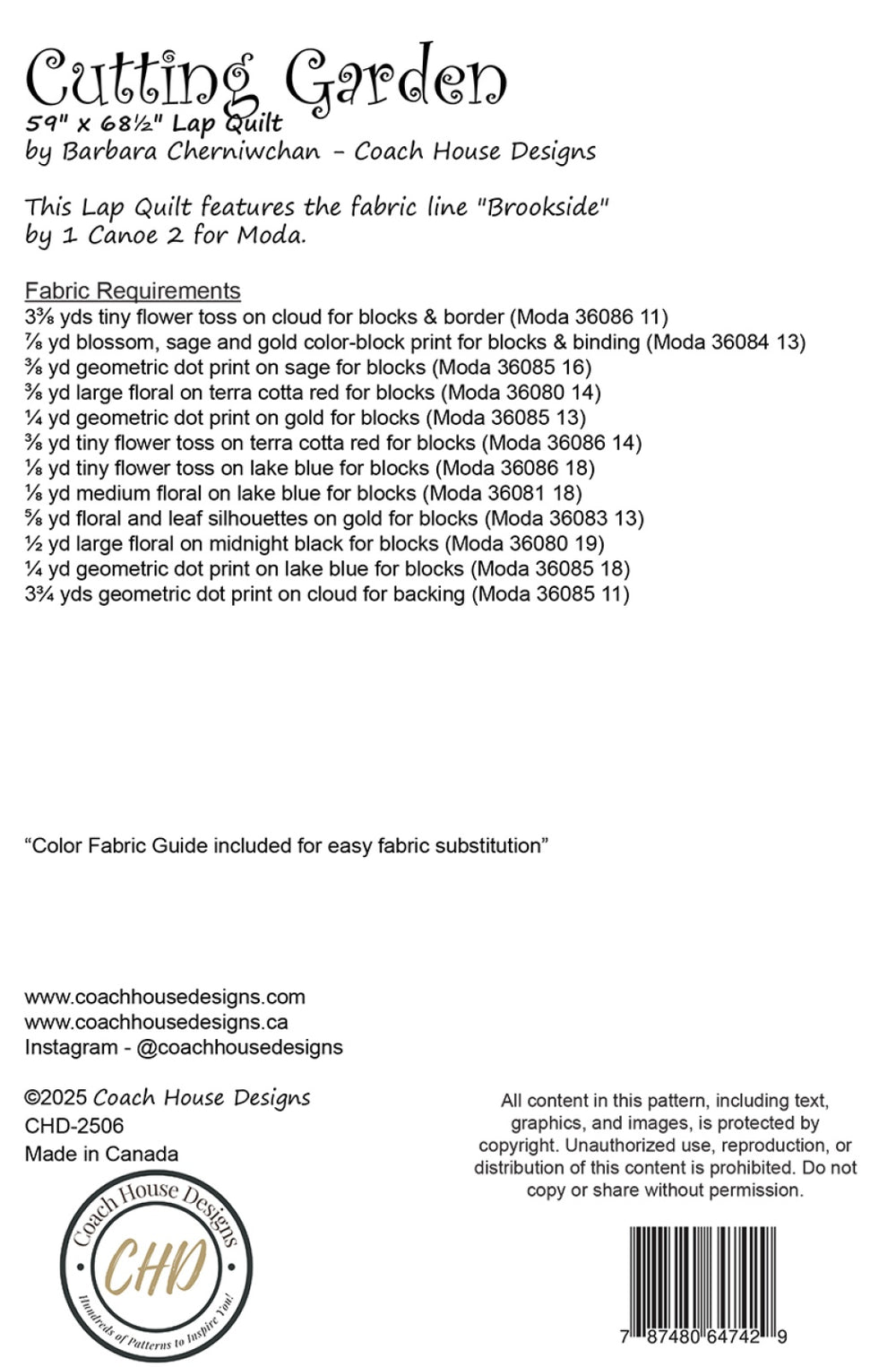 No room to grow a cutting garden…then sew one full of Sunflowers, Daisies and Coneflowers. This 59 x 68.5 lap quilt is all pieced and features Brookside by 1 Canoe 2 but it would look great in any floral fabrics.
