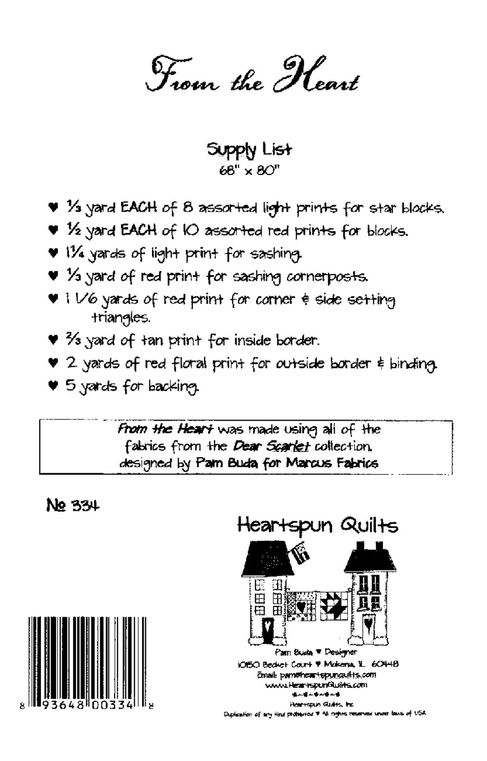 From the Heart is a wonderful quilt to feature my new Dear Scarlet fabric collection.
