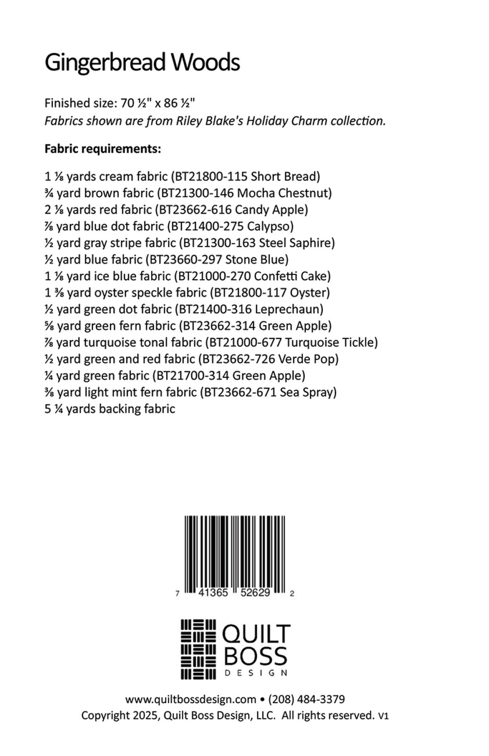 Gingerbread Woods in Holiday Charm Quilt Pattern is backordered and will ship as soon as it is back in stock.