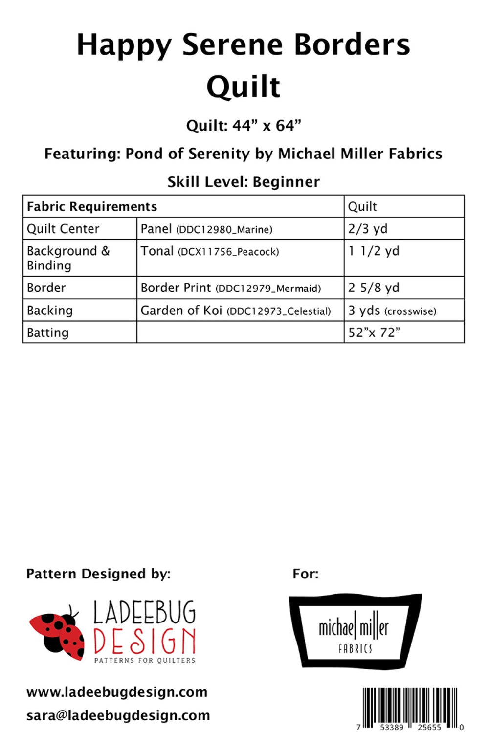 Features Michael Miller's Pond of Serenity collection. Finished size: 44 x 64. Confident Beginner - Precise cutting. This design starts with a vertical panel and adds a series of borders and pieced cornerstones. It is a quick construction design with a unique use of the border print.