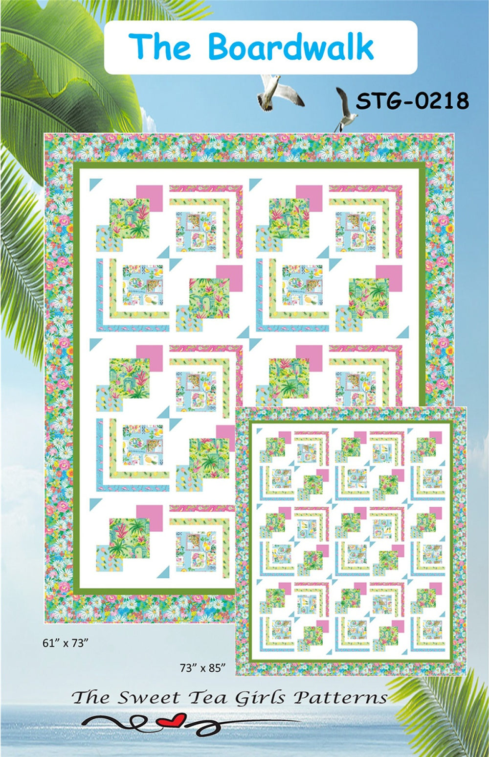 Suitable for a variety of fabric choices, including both coastal and traditional color palettes, this pattern offers two finished sizes: 61 x 73 and 73 x 85.