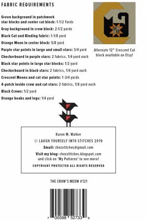 If crescent crows are not your thing, consider substituting them with my Crescent Cats block shown on the back cover (12” square).