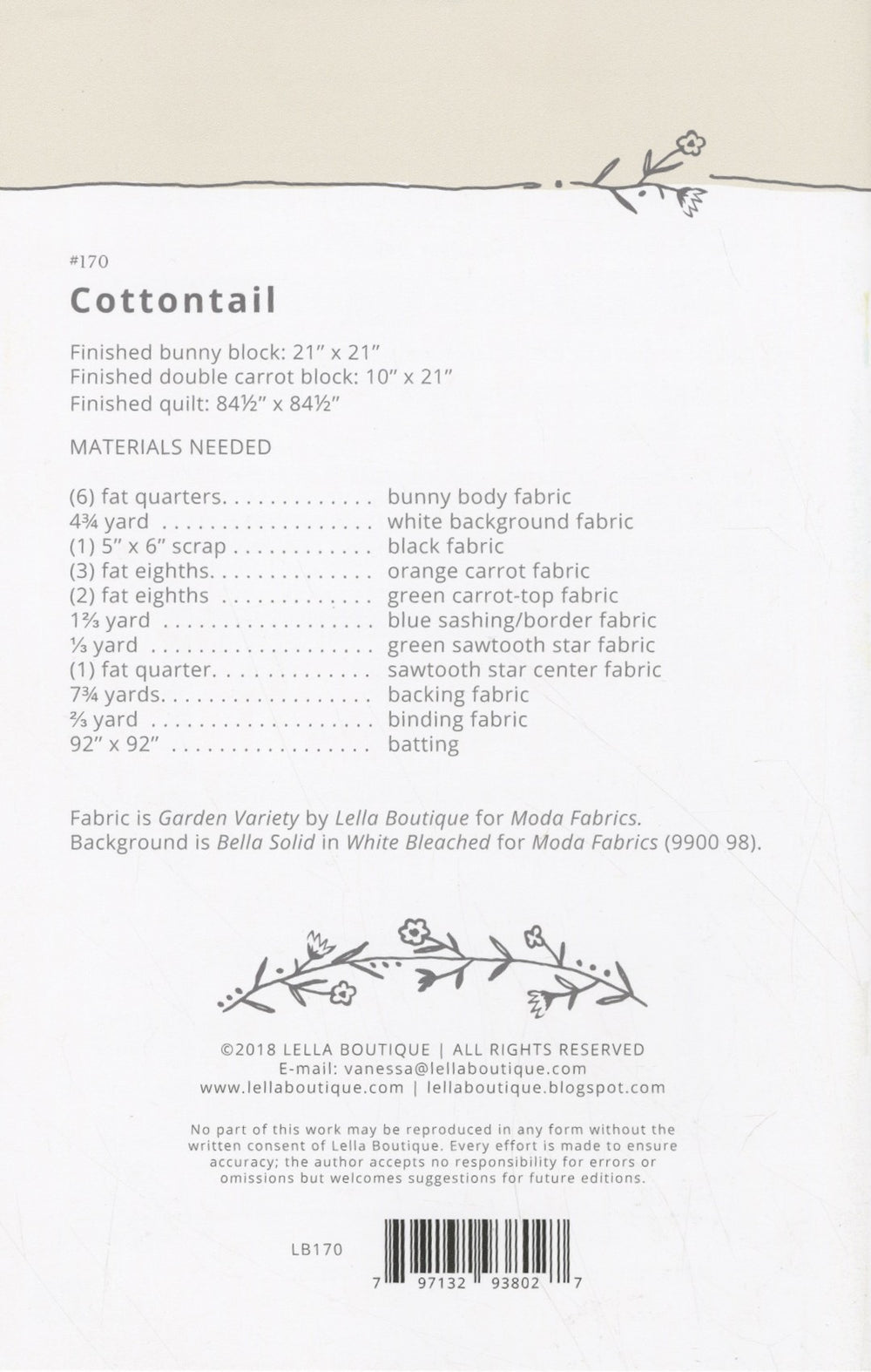 Finished bunny block: 21in x 21in Finished double-carrot block: 10in x 21in Finished quilt: 84-1/2in x 84-1/2in