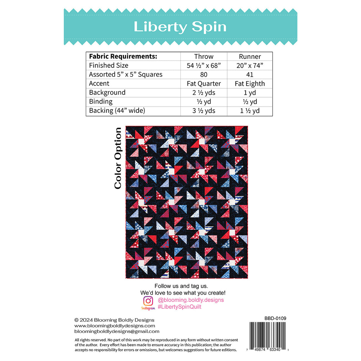 Liberty Spin Quilt Pattern is backordered and will ship as soon as it is back in stock.