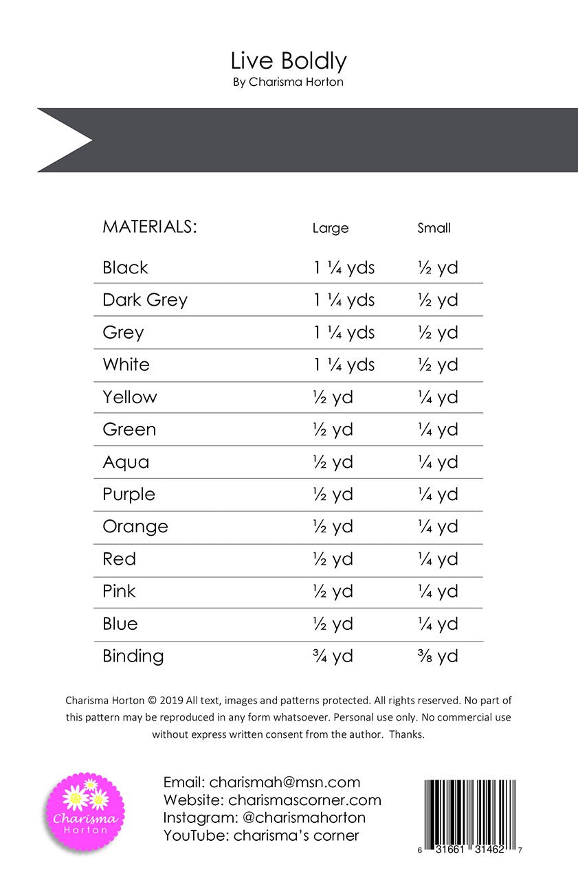 Live Boldly Quilt Pattern is backordered and will ship as soon as it is back in stock.