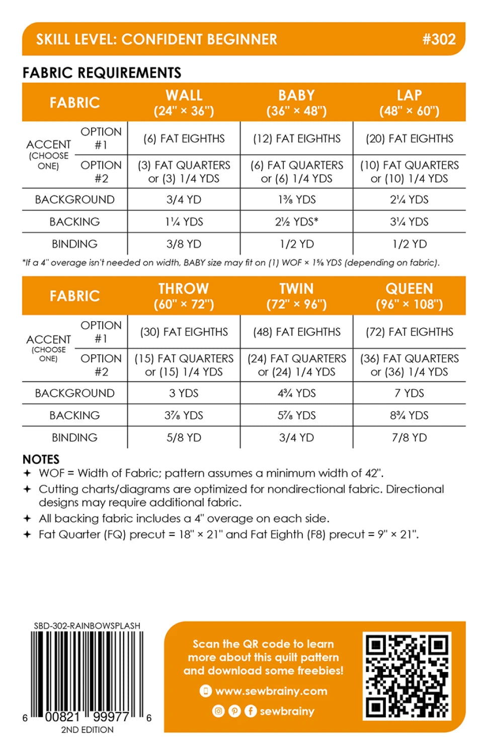 Rainbow Splash Quilt Pattern is backordered and will ship as soon as it is back in stock.