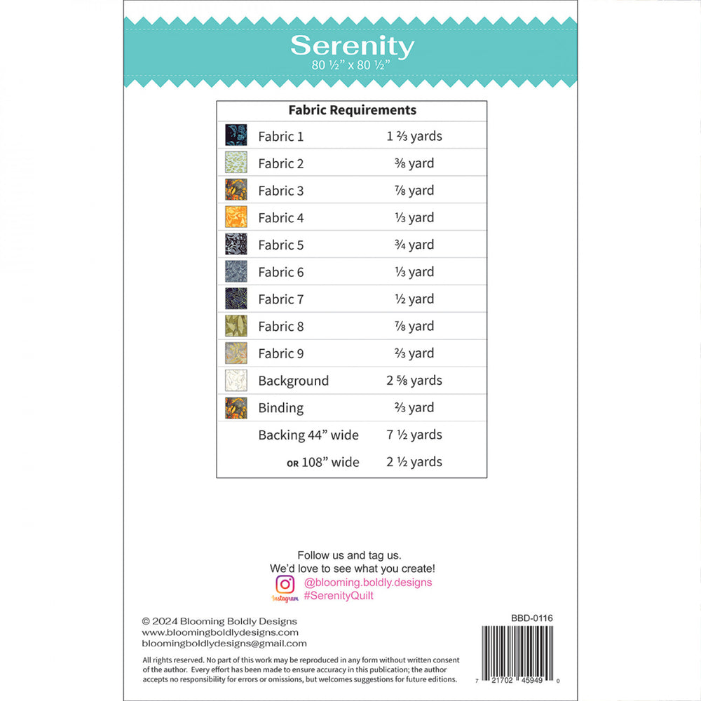 Serenity Quilt Pattern is backordered and will ship as soon as it is back in stock.