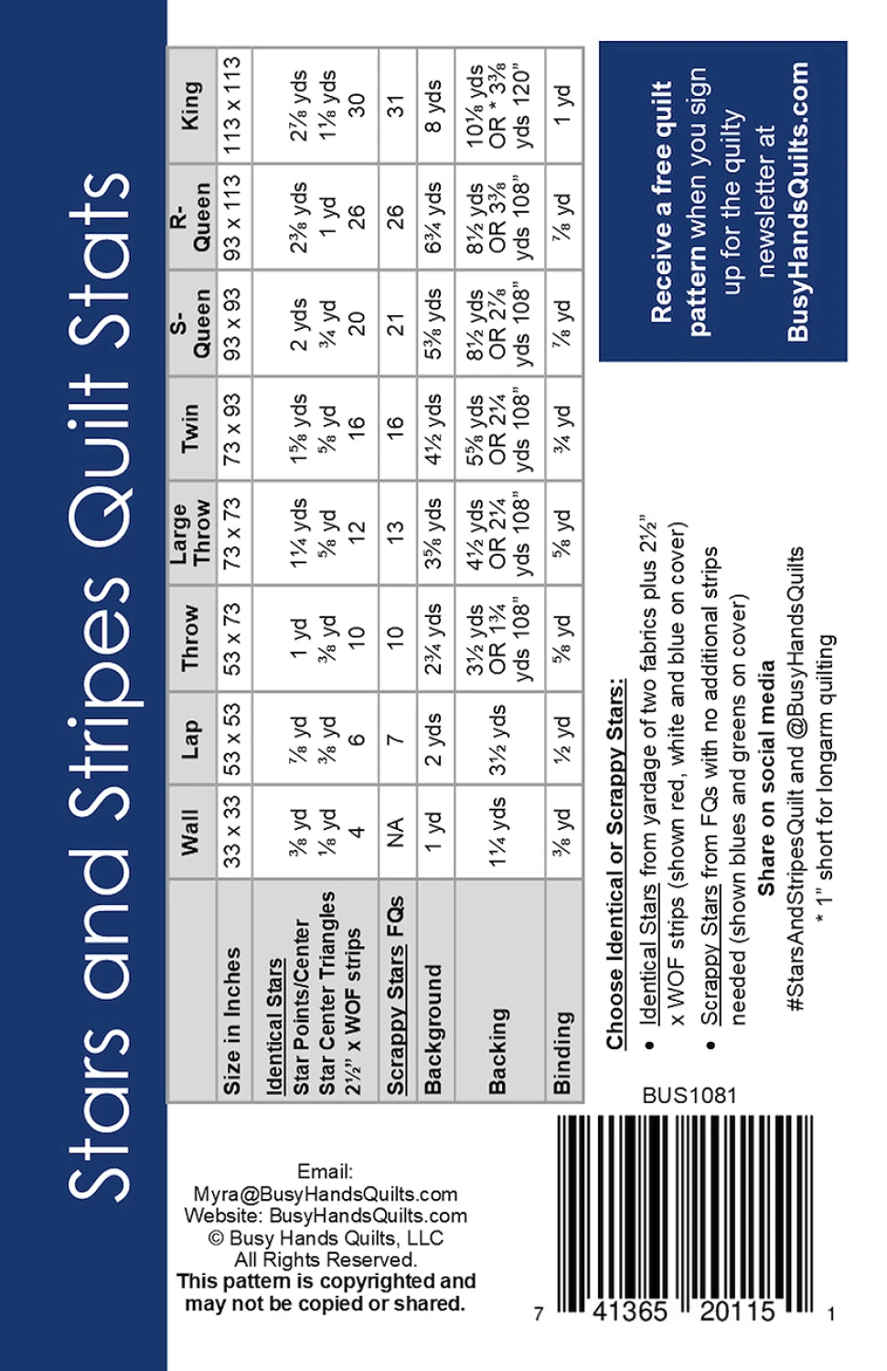 Stars and Stripes Quilt Pattern is backordered and will ship as soon as it is back in stock.