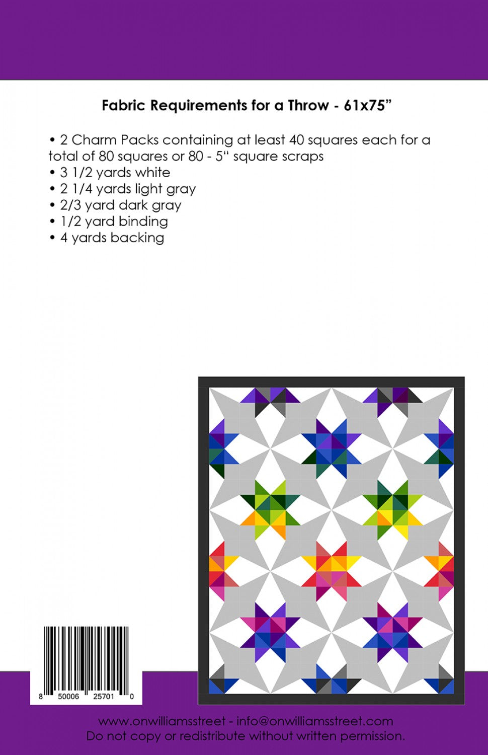 Whirl is a beginner modern quilt pattern using simple half square triangle blocks and an easy foundation paper piece block to create a fun colorful statement. Layouts for a baby quilt (about 40x60"), a throw quilt (about 50x72"), a twin size bed quilt (about 75x89") and a queen size bed quilt (about 90x111") are included.