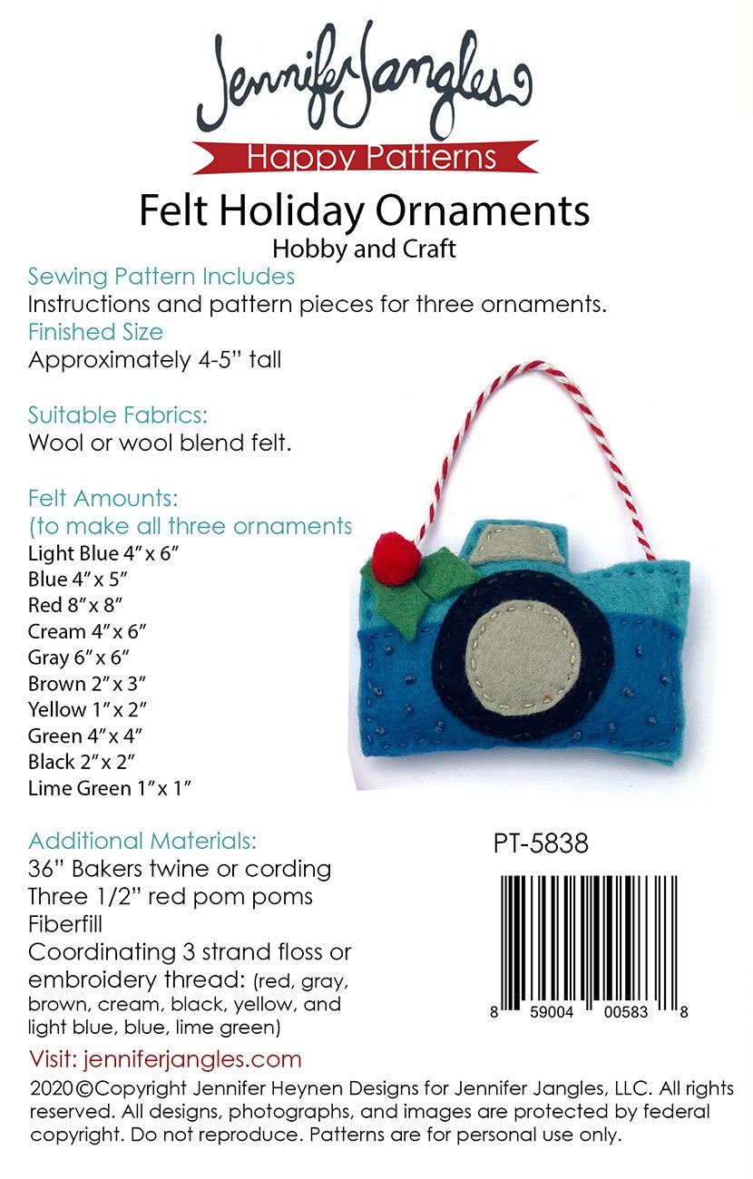 Stitch up some felt ornaments for the hobbyists your life. Pattern includes pattern templates and illustrated instructions to make three felt ornaments; Camera, Yarn Ball, and Paint Palette.