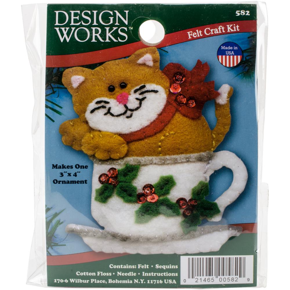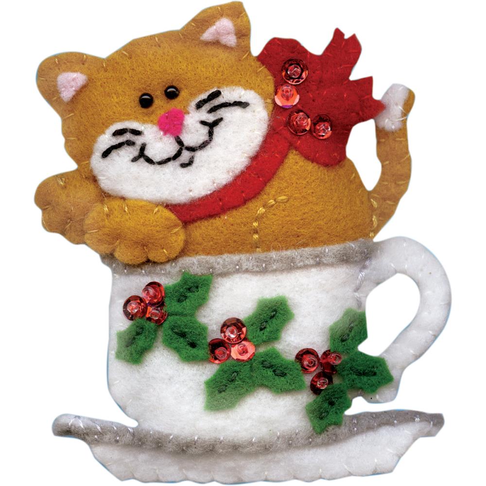 Teacup Cat Felt Ornament Applique Kit