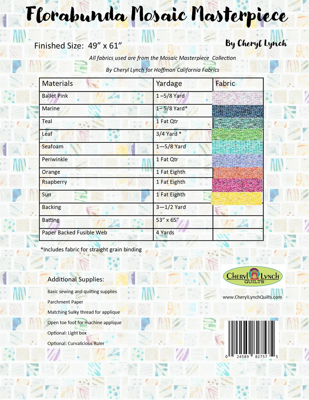 Florabunda is an over sized whimsical wall hanging with bountiful flowers, fauna and wildlife that looks like a mosaic, using Mosaic Masterpiece II fabric.