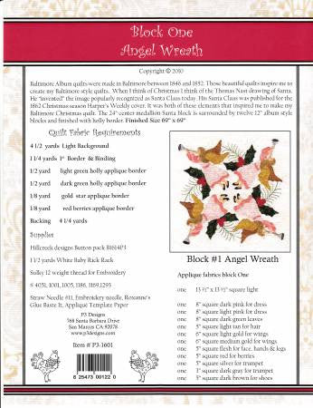 Baltimore Christmas Complete - Done in the Baltimore Quilt style this Christmas quilt has a 24in center medallion Santa block is surrounded by twelve 12" album style blocks with holly and berry swag applique border. Finished size 70in x 70in.