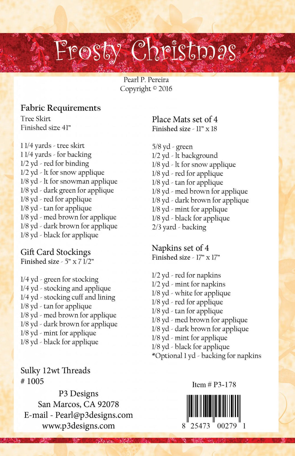 This pattern has four fun holiday projects 41" Tree Skirt, 11" x 18" Place-mats and 17" square Napkin and cute 5" x 7 1/2" Gift Card Stockings.