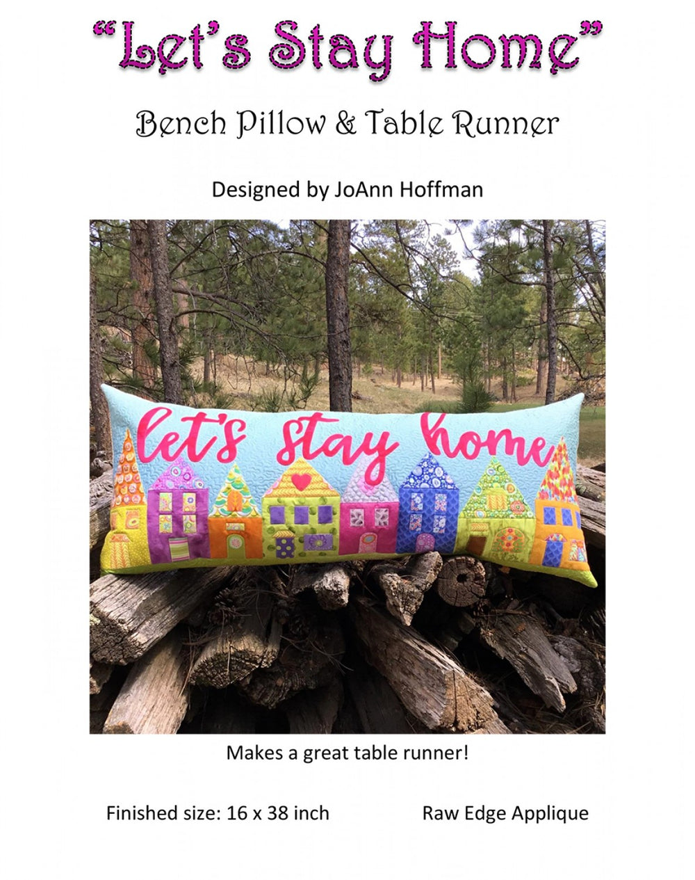 Let's Stay Home bench pillow and table runner pattern. My shelter in place pillow. Raw edge applique. 16 x 38 inches. Full size pattern, easy directions with lots of pictures. Pattern includes directions for making pillow form.