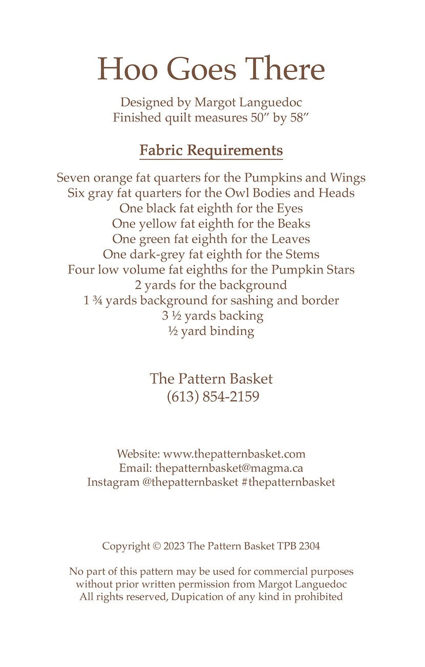 Hoo Goes There Quilt Pattern is backordered and will ship as soon as it is back in stock.