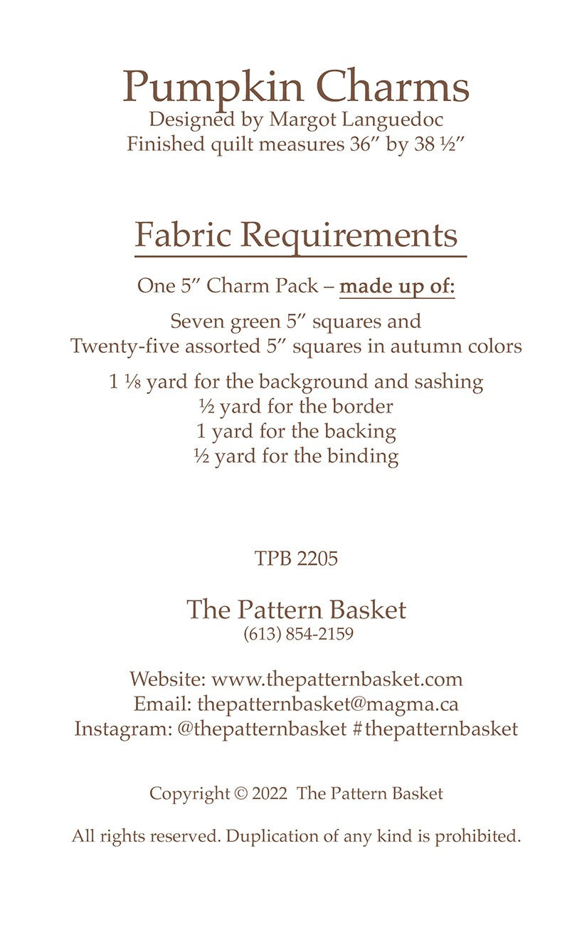 Pumpkin Charms Quilt Pattern is backordered and will ship as soon as it is back in stock.