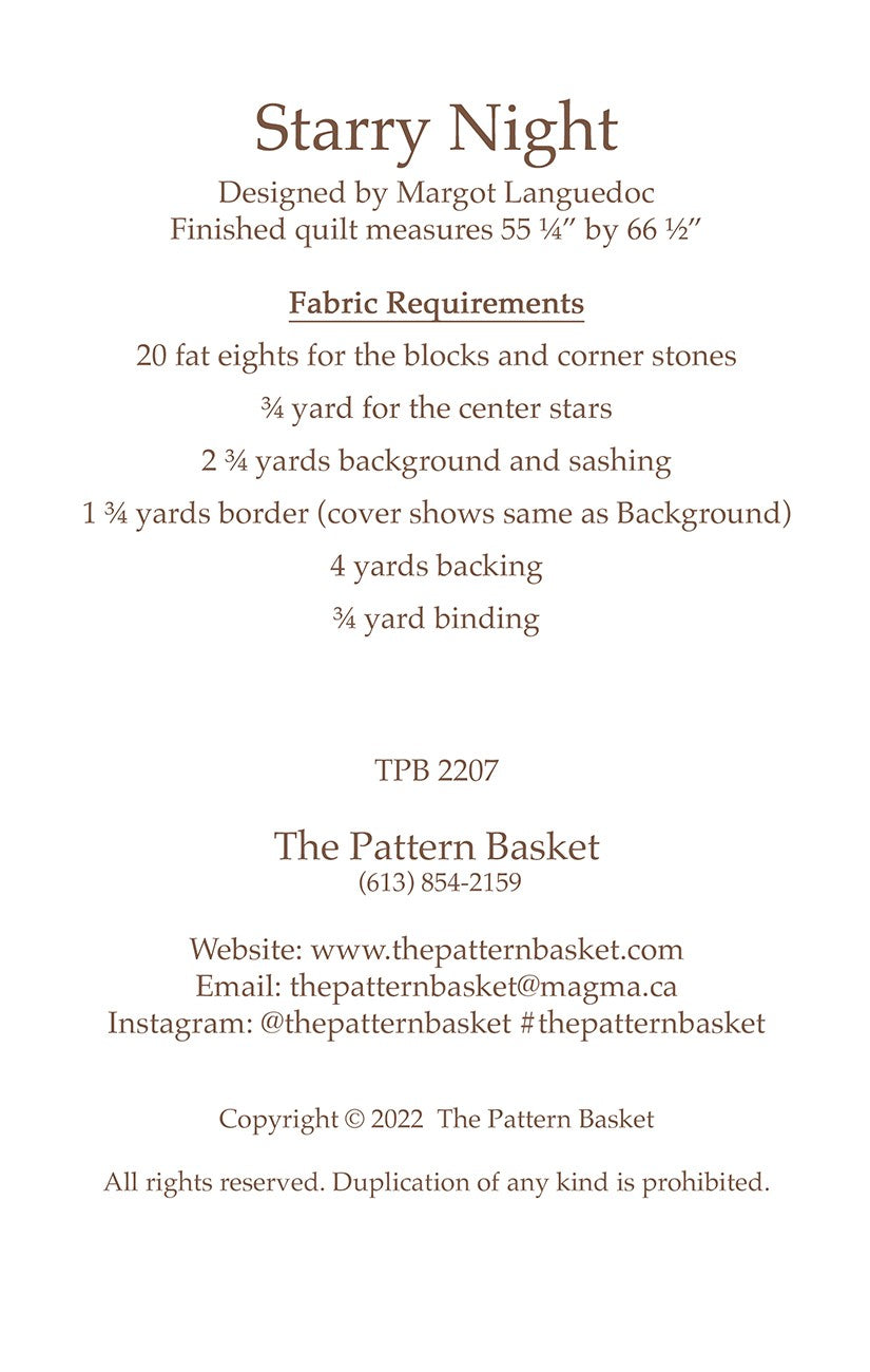 Starry Night Quilt Pattern is backordered and will ship as soon as it is back in stock.