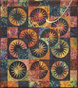 48in x 54in Desert Sky uses a collection of bright and dark fat quarters. Template Layout sheets are provided with these instruction to speed up the cutting process, allowing you to stack and cut your fat quarters in two groups of nine fabrics. An even amount of yardage is needed for each color. This small wall hanging is definitely one to add to your collection. The skill level ranges from beginner to advanced.