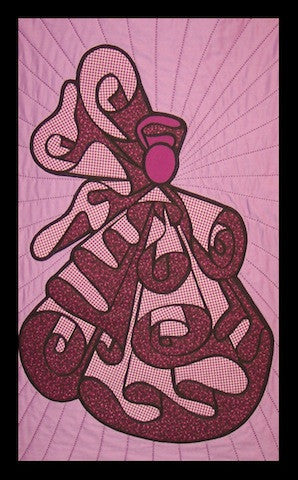 This small angel appears to hover in the air with her dress flowing around her. Contrasting light and dark fabrics create depth in the folds of the gown, while the stitching on the background spreads out like rays of light. Colors can be changed to coordinate this pattern with any decor.20� x 32�