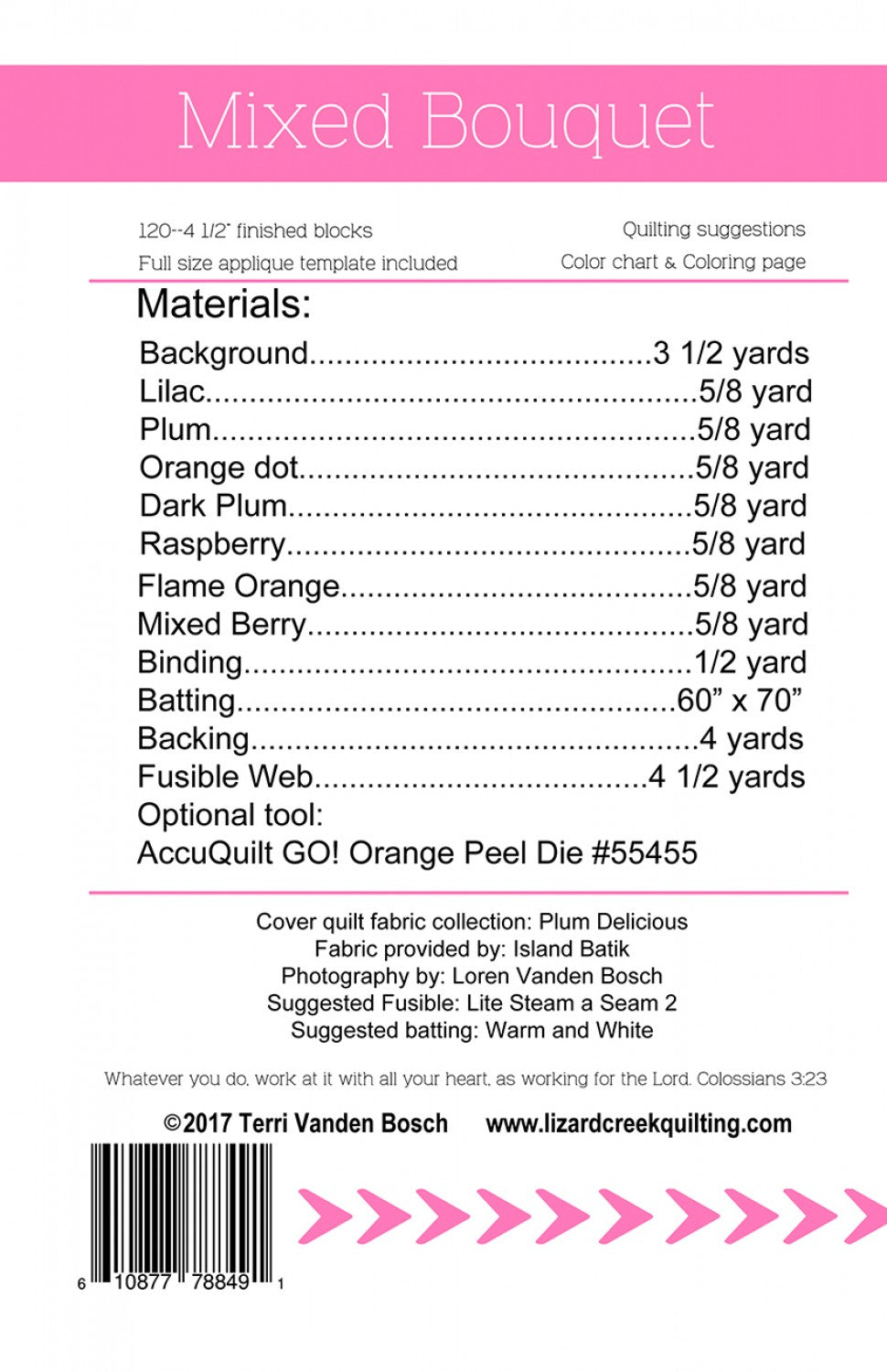 Full size petal applique template included or an AccuQuilt GO! Orange Peel die can be used. Cover quilt made with Island Batik fabrics.