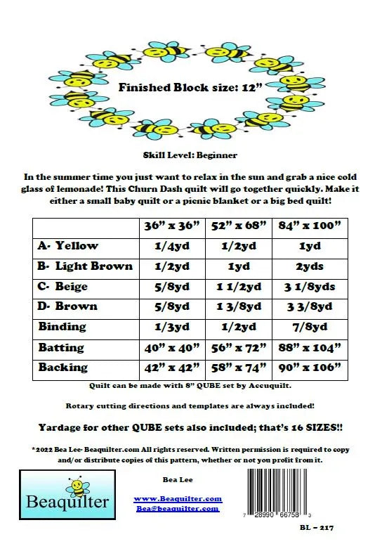 Yardage for other QUBE sets also included; that’s 16 SIZES!!